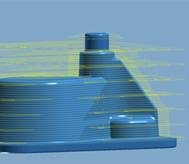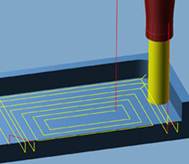 | 3D grobo frezanje: Vmesni koraki hyperMILL 2012 razširja 3D grobo frezanje, ki vključuje vmesne korake podobnim kot v hyperMAXX. To omogoča ravnim pomikom in stenam pod kotom lažjo obdelavo. Vmesni koraki se začnejo z velikimi aksialnimi pomiki in odstranjevanje materiala se začne od spodaj proti vrhu. To odstrani odvečne korake in omogoča optimizacijo poti in časa obdelave. | ![]() |