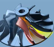 | Paket 5-osne obdelave turbin: Funkcija razdelitve žepa Nova funkcija pomeni, da je sedaj možno frezati tako levi kot desni del delilne lopatice pri grobem frezanju. Zaradi tega se lahko sedaj kadarkoli uporabi najdaljše možno orodje posledično pa se zmanjša čas obdelave. | ![]() |
