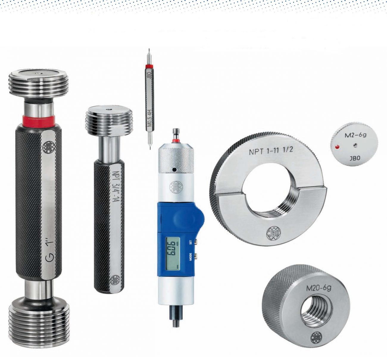 Celovit nabor navojnih kontrolnikov zajema vse navoje od premera 0,5 do 300 mm. Zaloga pokriva več kot 8.000 različnih dimenzij trnov in toleranc, kar nam omogoča hitro dobavo.