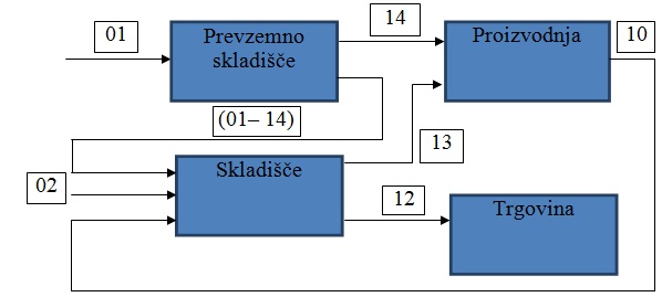 - 13: oddaja SD iz skladišča v proizvodnjo,
