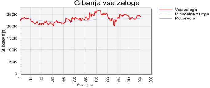 Slika 7: Graf gibanja vseh zalog (SD, ki so stalno na zalogi) v skladišču (trackingALL).